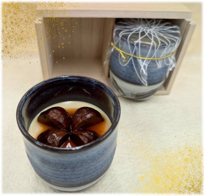 (平飼い初生卵使用、ユリス麻布十番レシピ、藤代範雄デザイン天心焼、キャラメル別添)