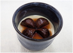プリンのまろやかさに、渋皮ならではのコクが重なり、